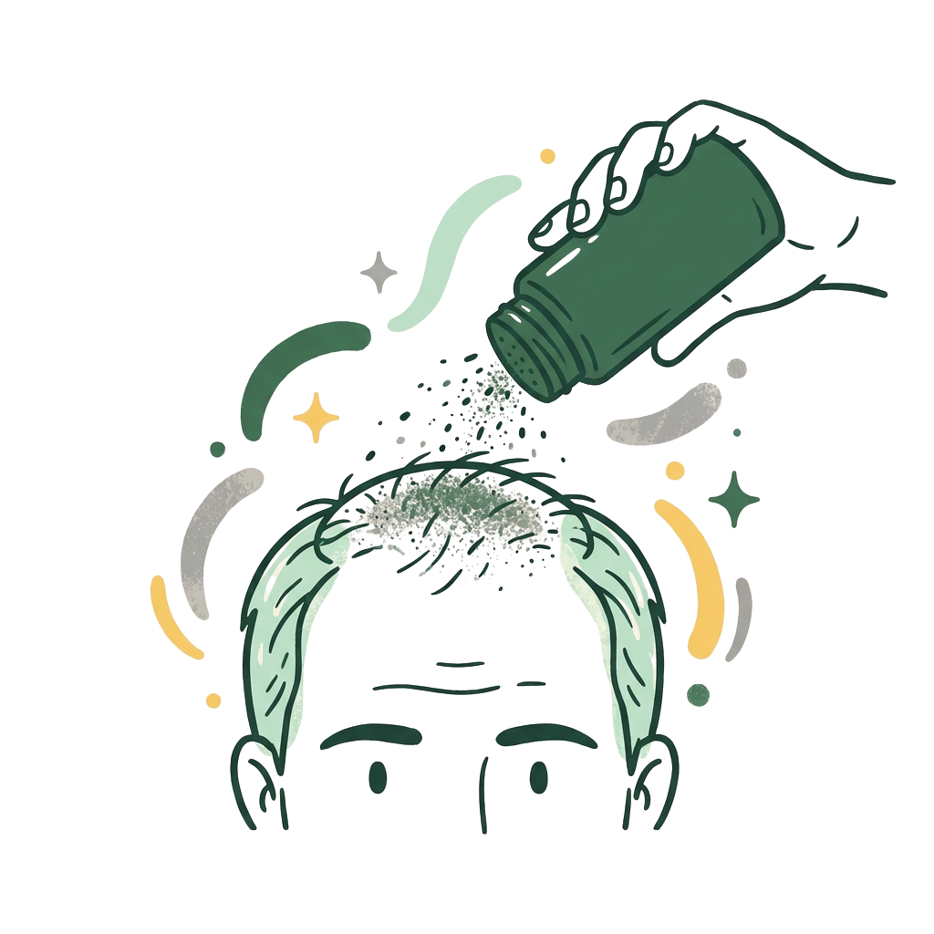 Hair fibers and sprays that instantly cover thinning areas, giving the appearance of fuller, thicker hair.
